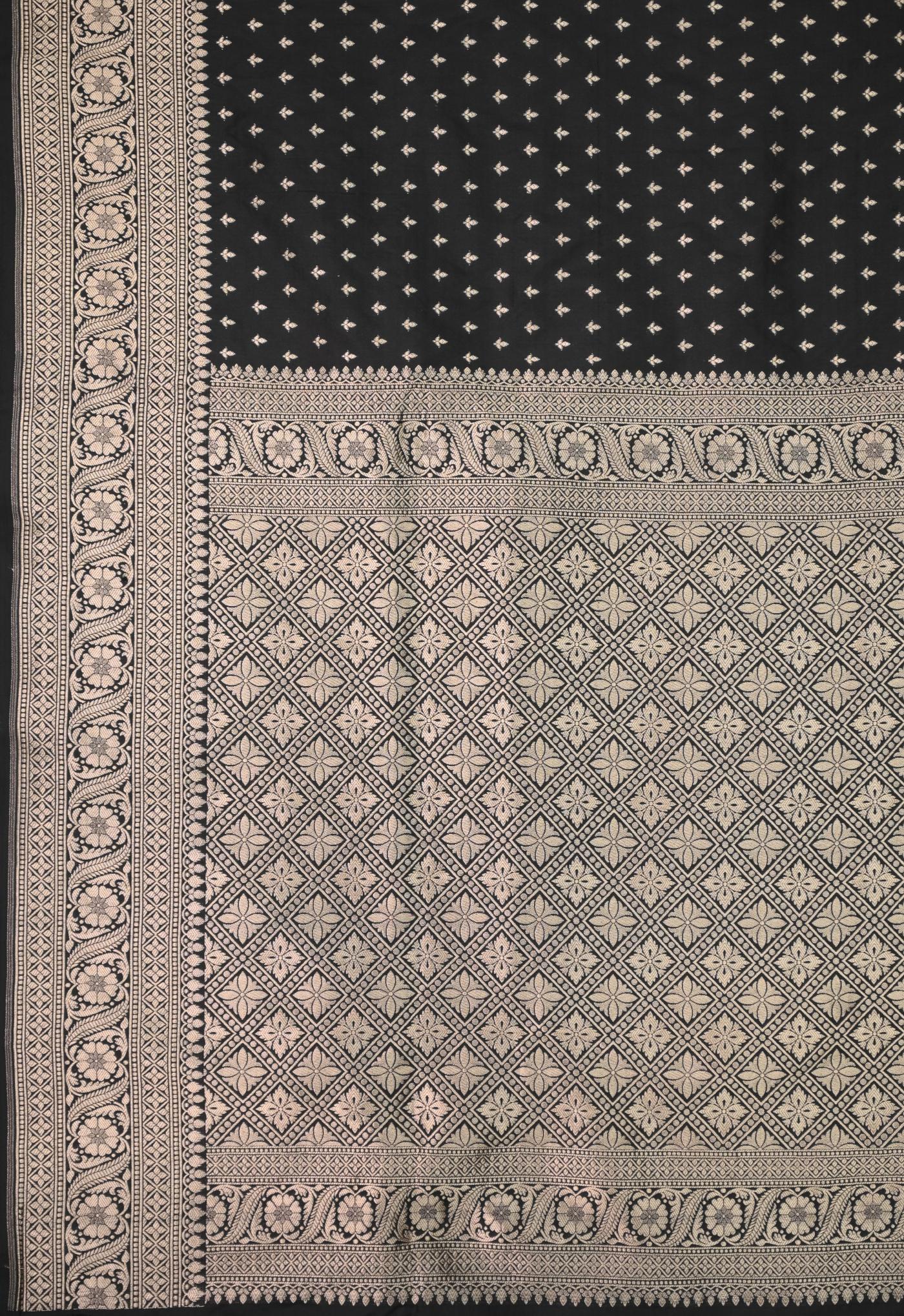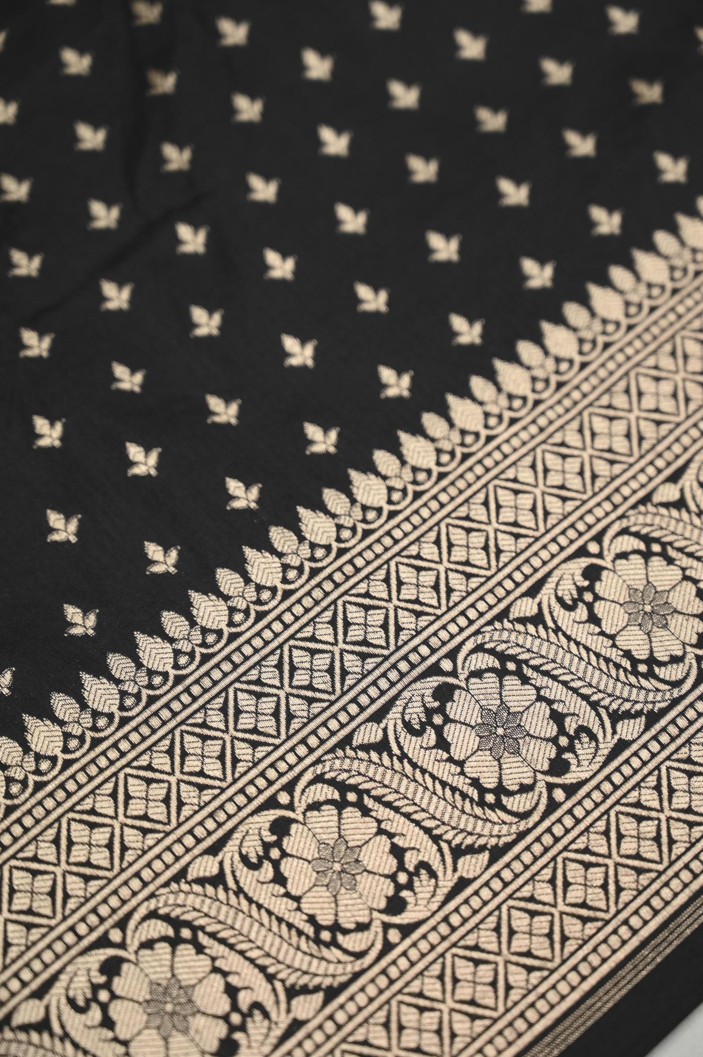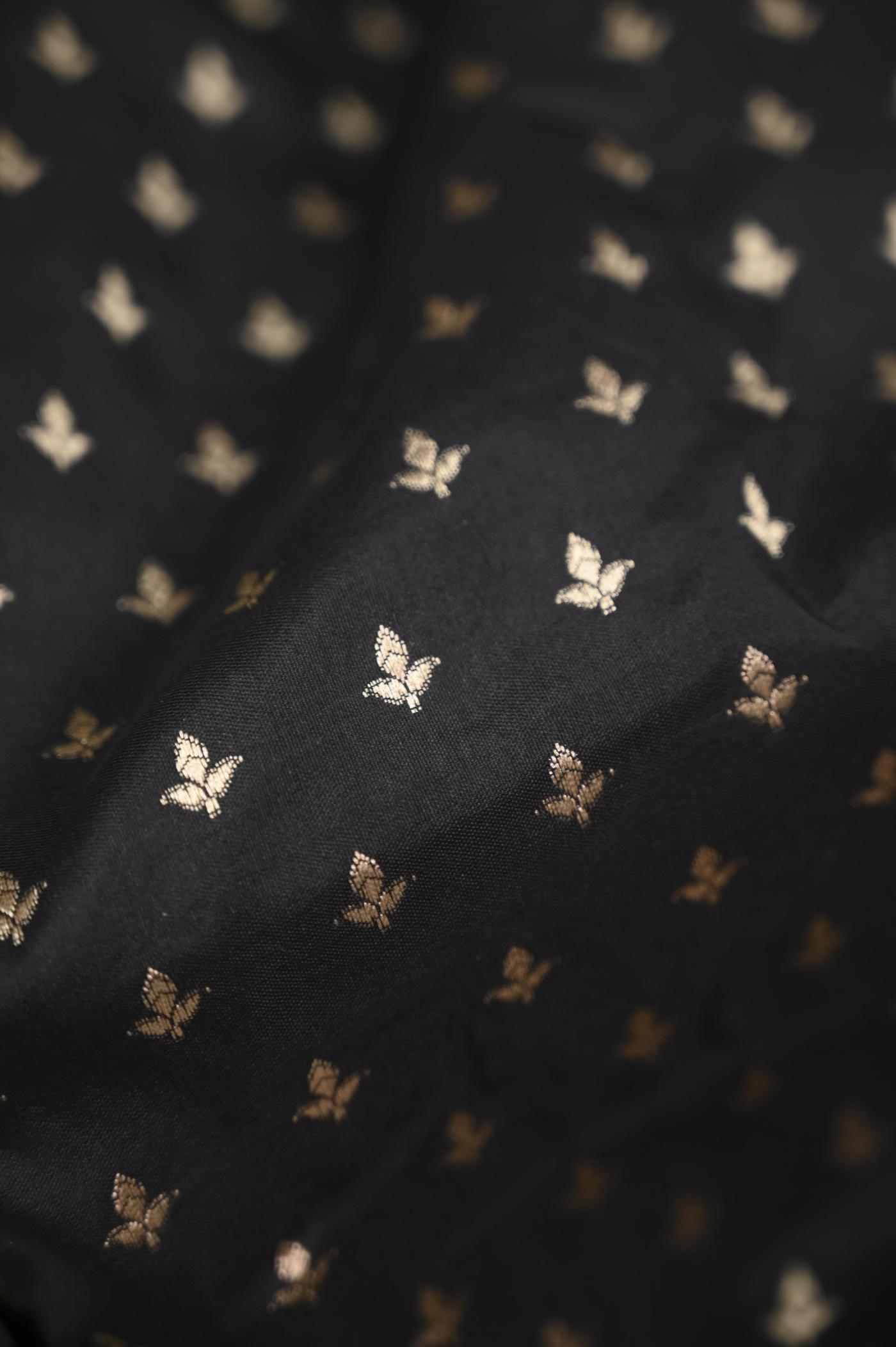 This Black Katan Opada Banarasi Saree is woven with the finest Banarasi Katan Silk as Fabric, sourced from the heartland of Banaras, known for its rich textile heritage.