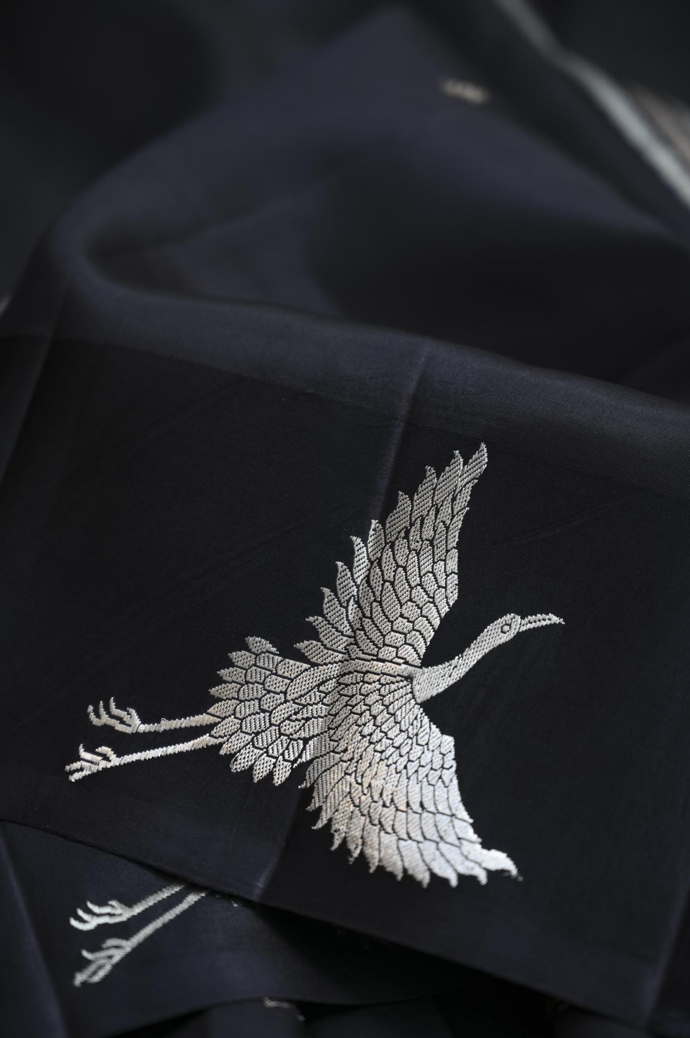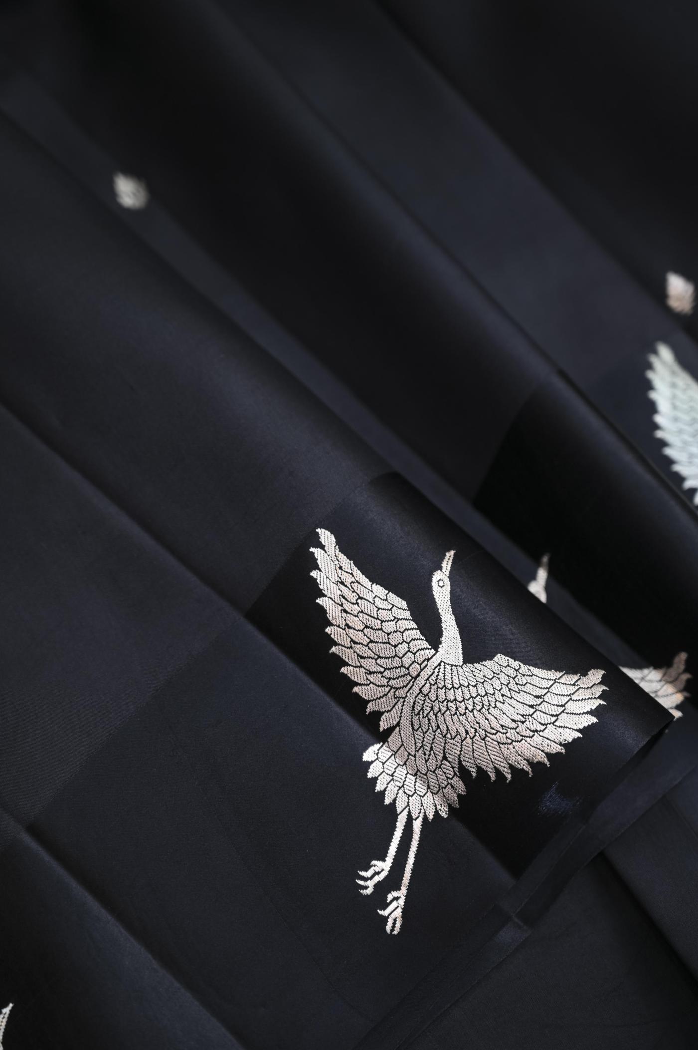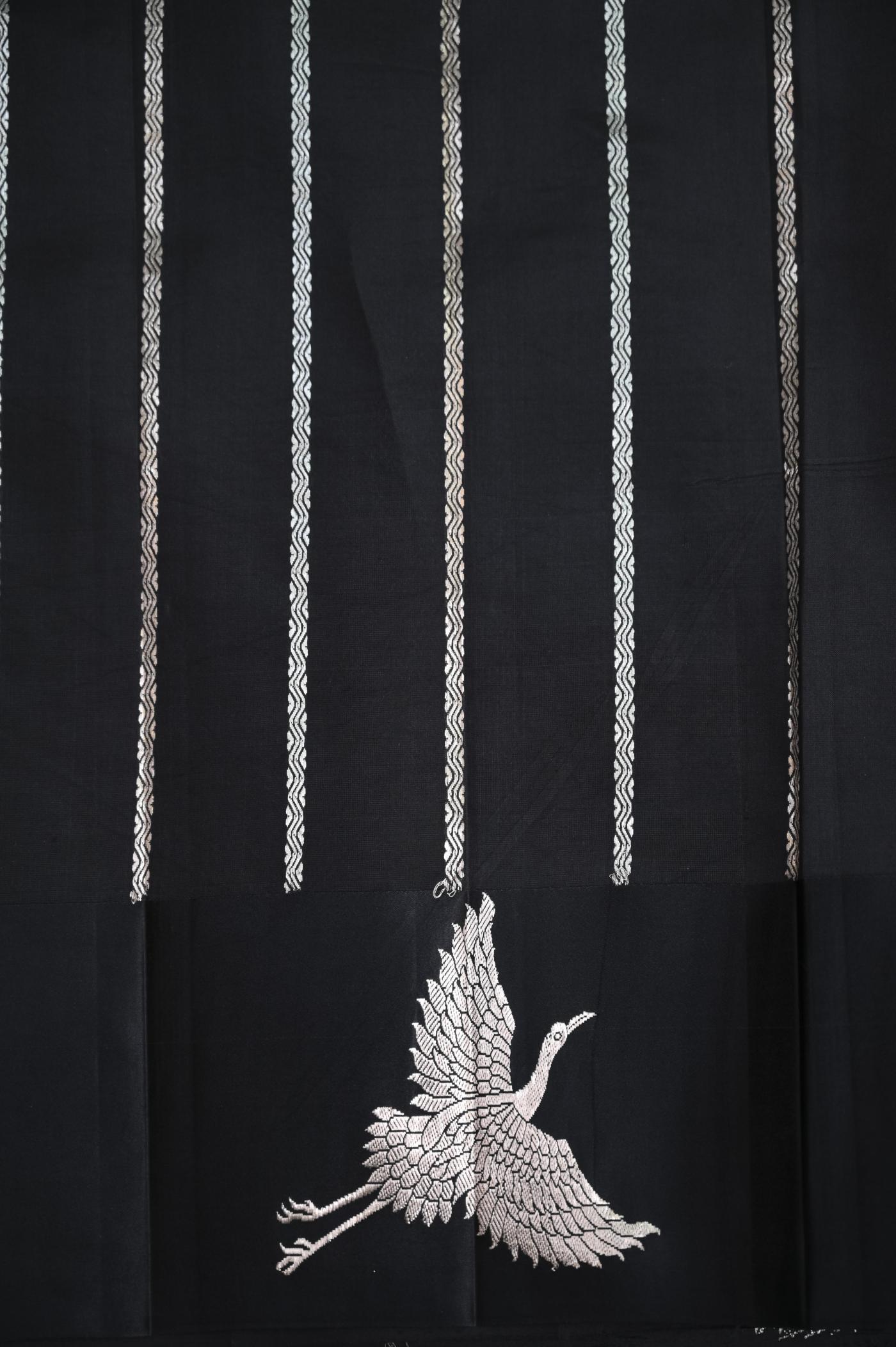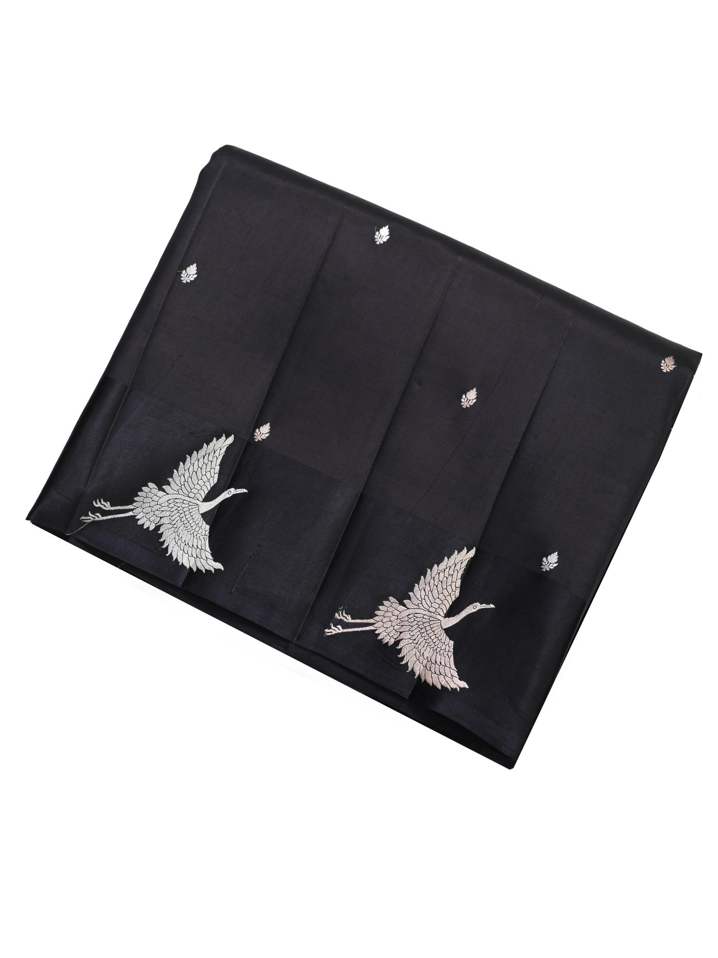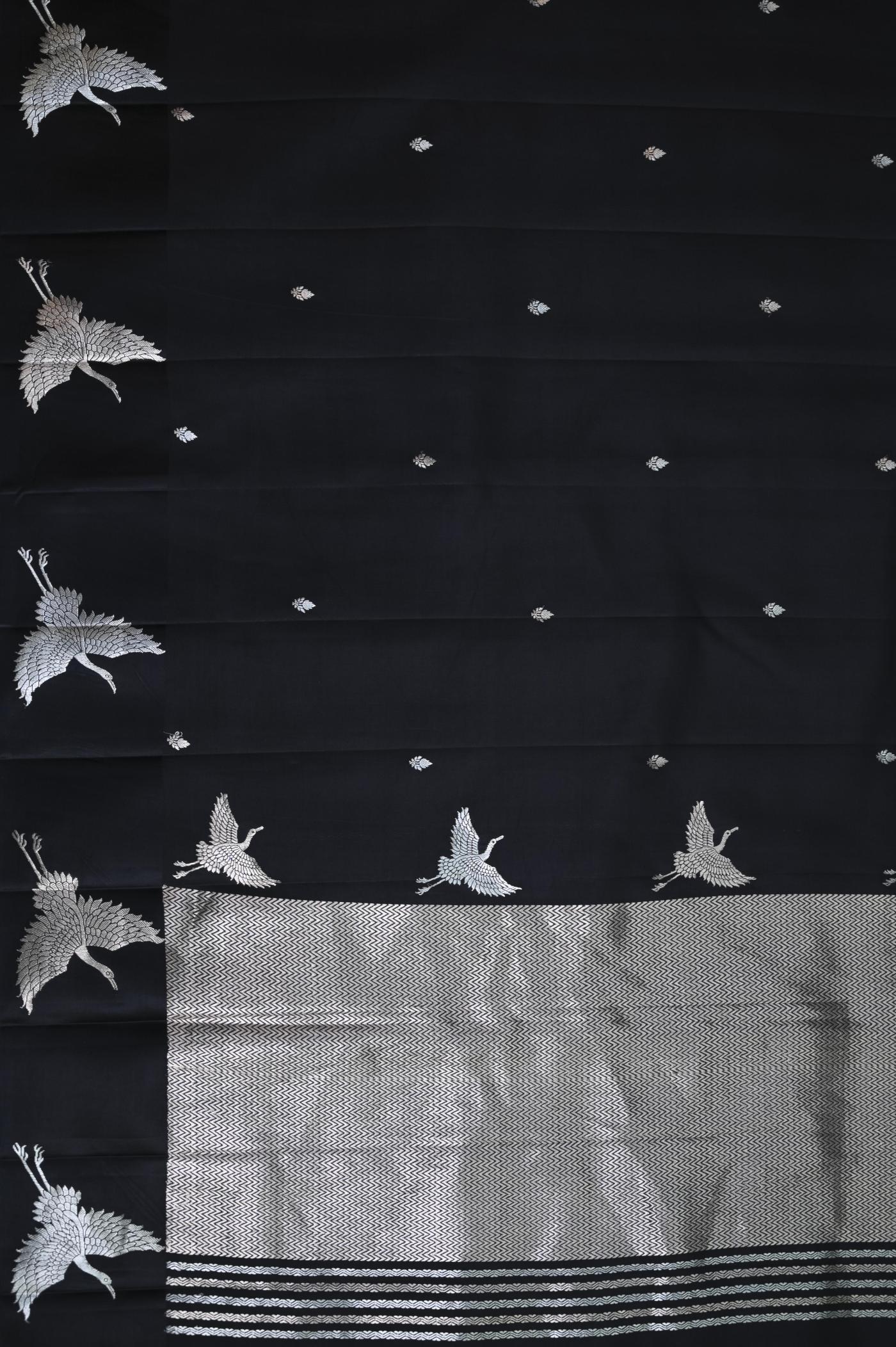 Black Handloom Banarasi Saree Raw Mango Silk Fabric | Sanskar