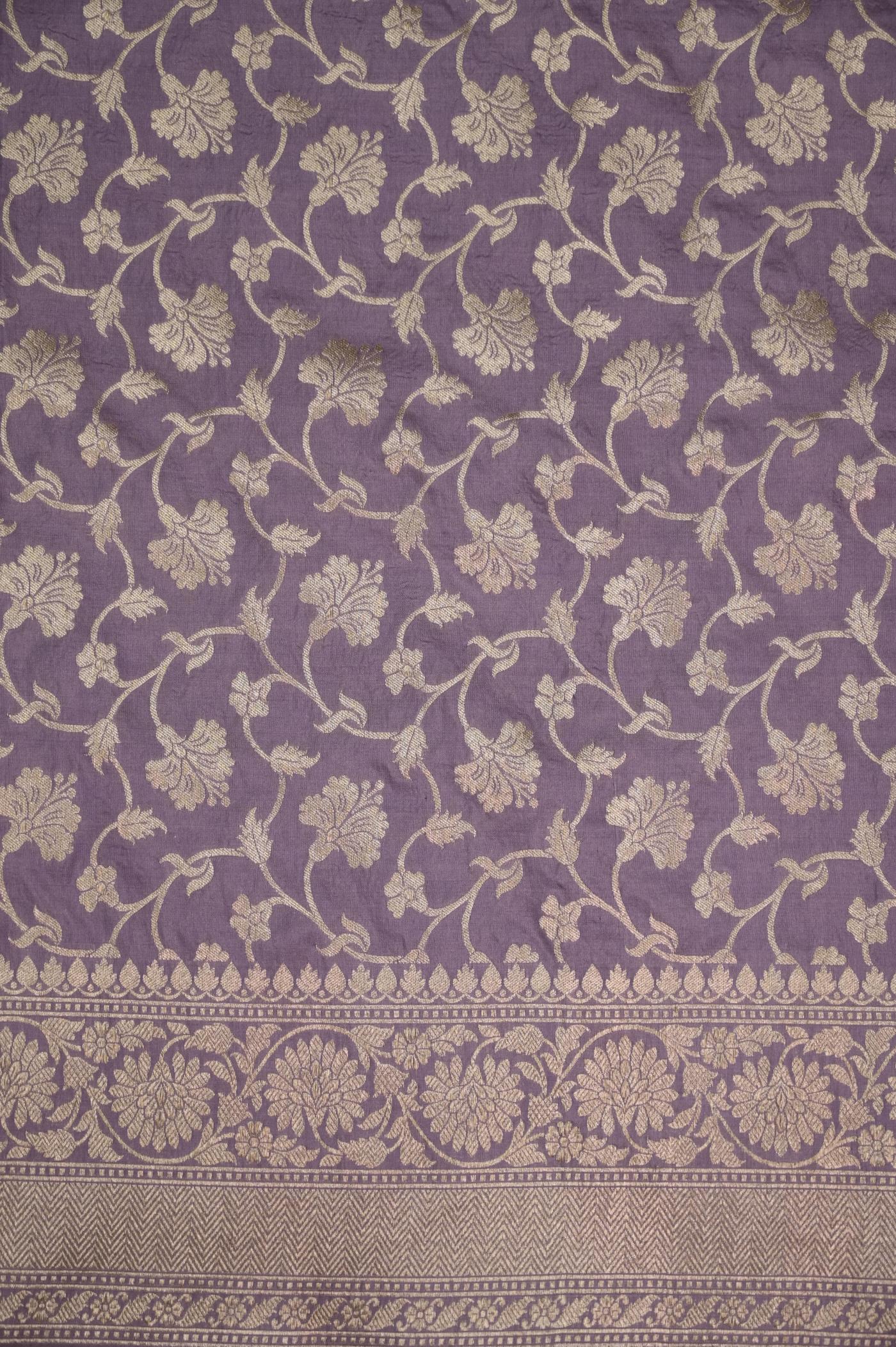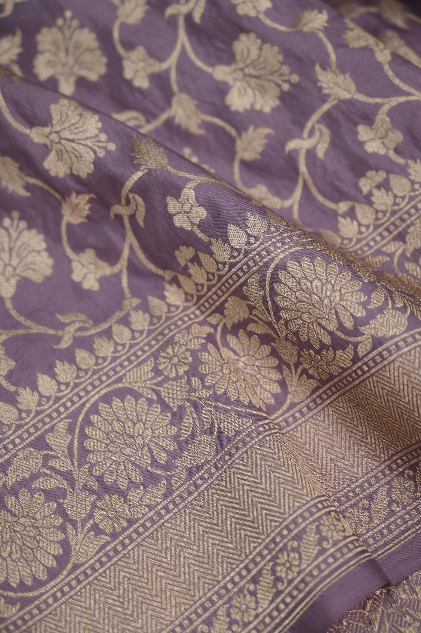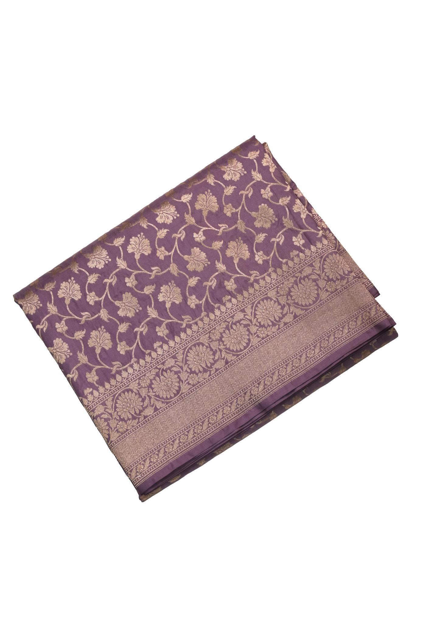 The color palette of this saree is a mesmerizing symphony of hues. Imagine a lustrous base of Red, adorned with exquisite gold zari work that shimmers like stars. The zari patterns dance across the fabric, intertwining to form a tapestry of intricate motifs, showcasing the skilled artistry of Banarasi weavers.