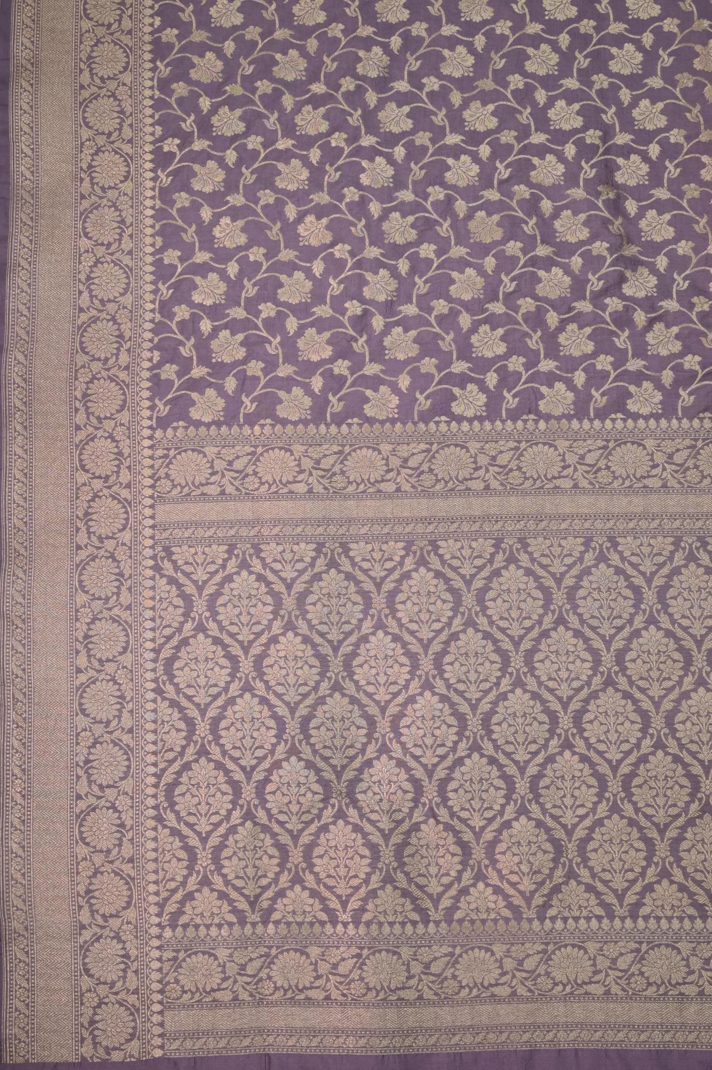 As you gaze at the saree, you notice the Aanchal, Booti & Pallu Design gracefully cascading along its length. The zari work glimmers with every movement, reflecting light and adding a touch of regal splendor.