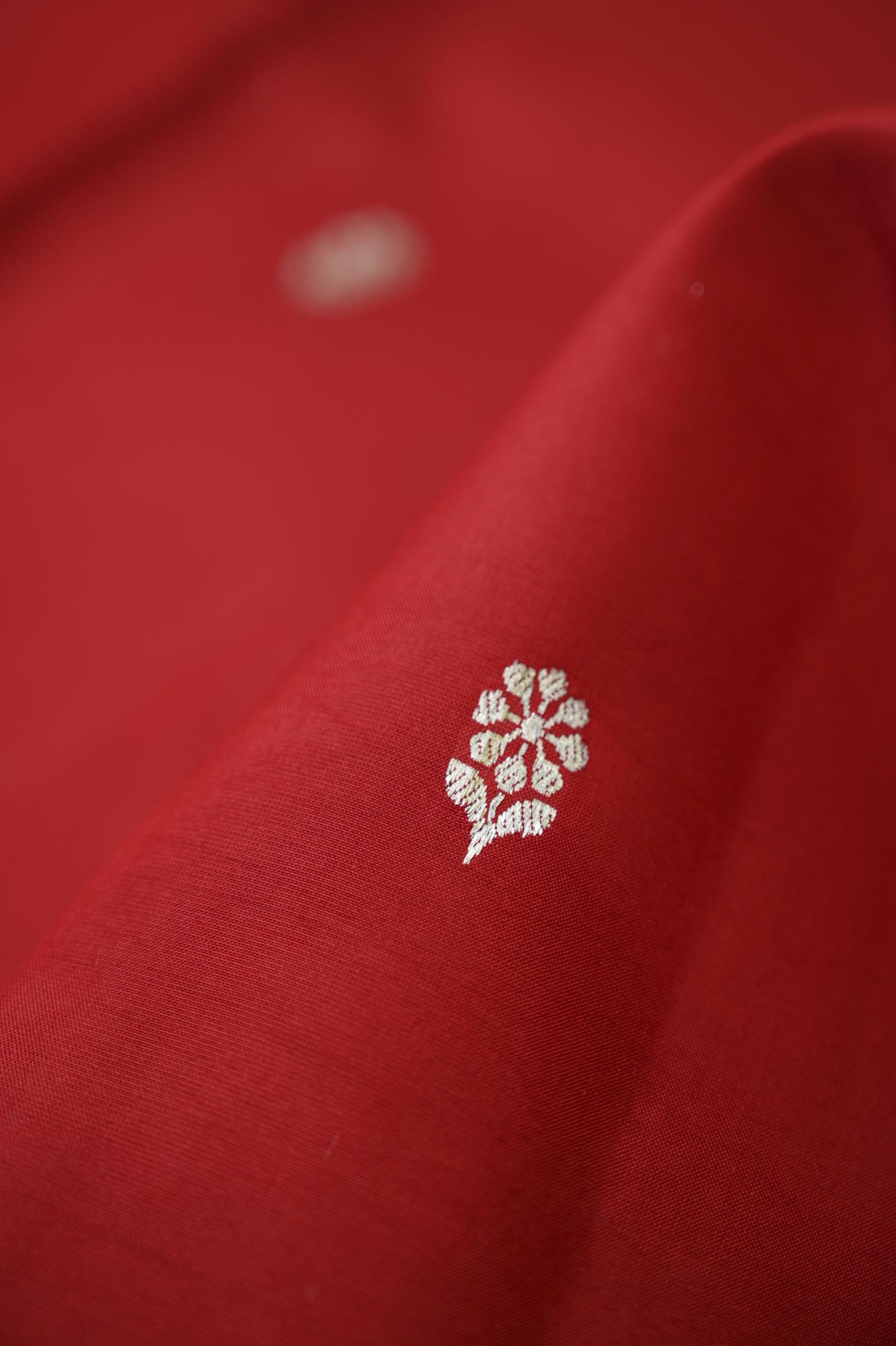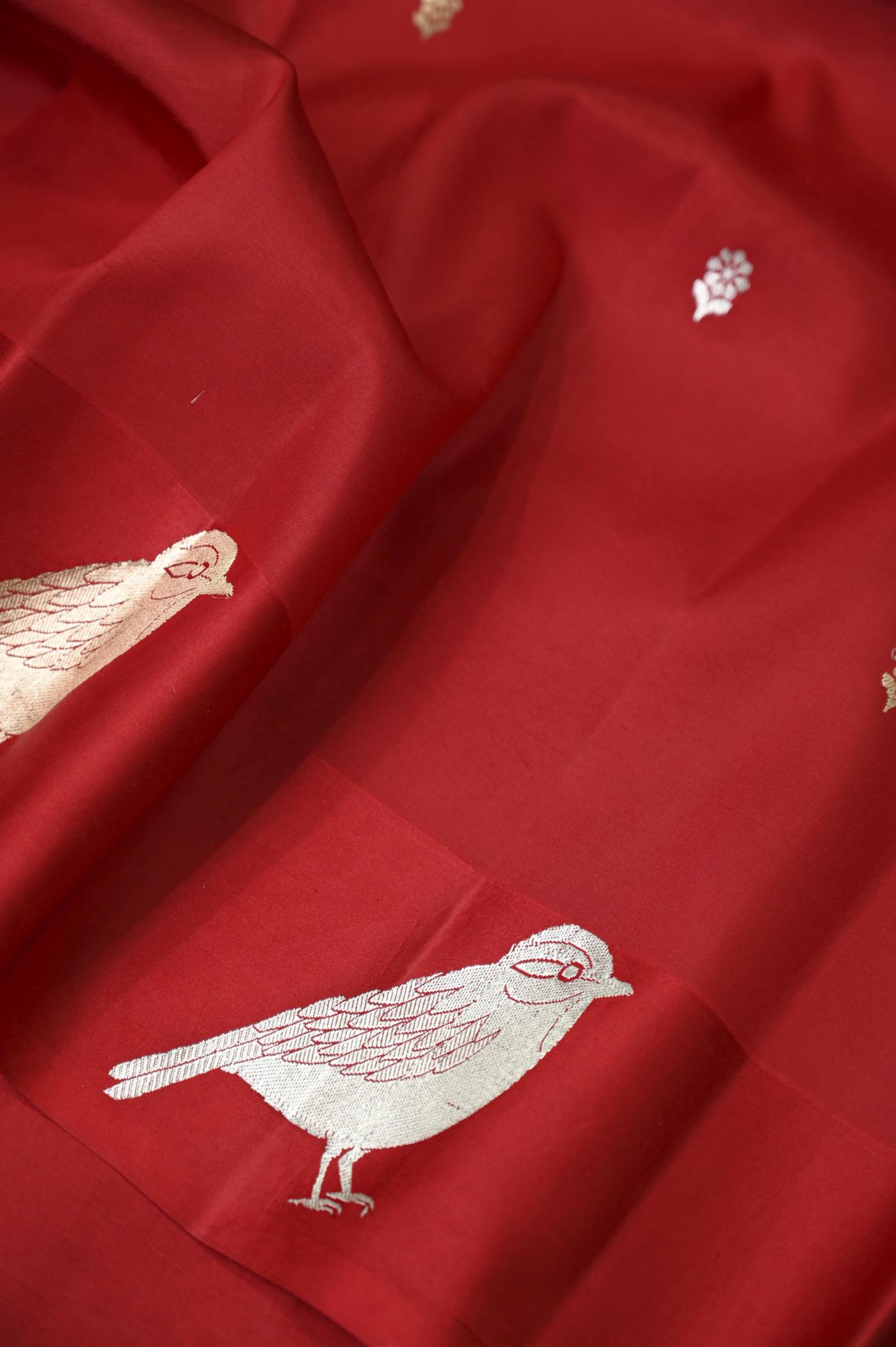 This Red Mango Silk Handloom Banarasi Saree is woven with the finest Banarasi Moonga Silk as Fabric, sourced from the heartland of Banaras, known for its rich textile heritage.