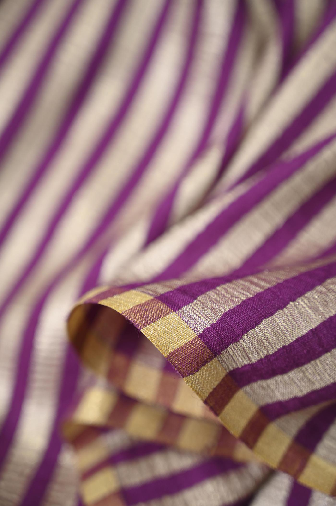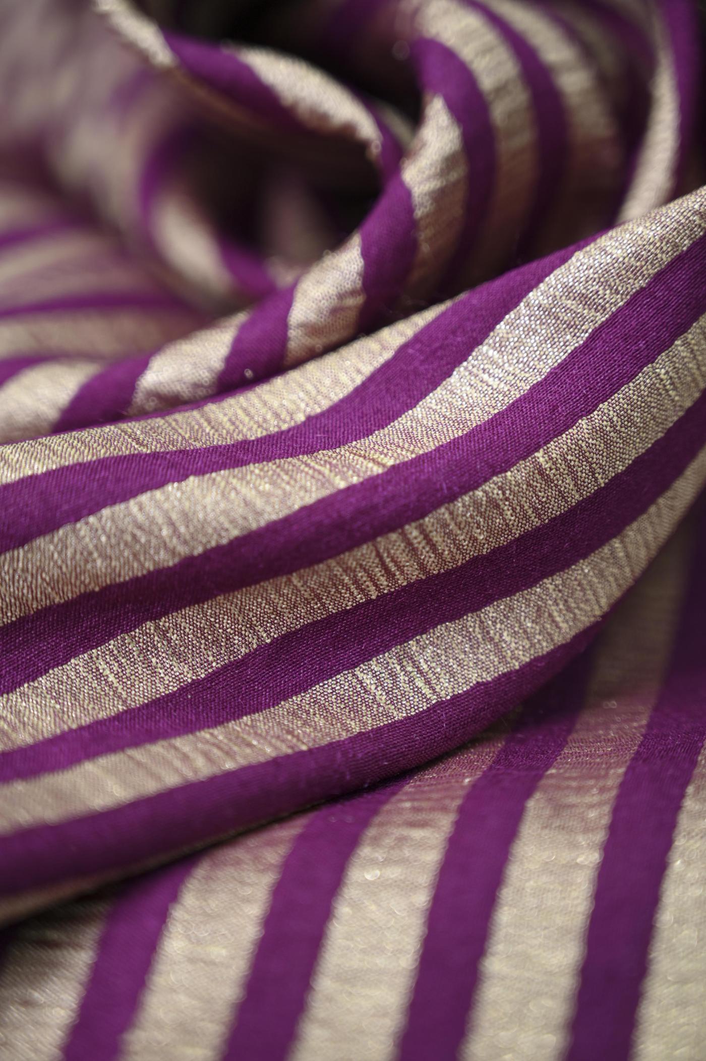 Wine Stripe Saree Banarasi Katan Silk Fabric | Sanskar